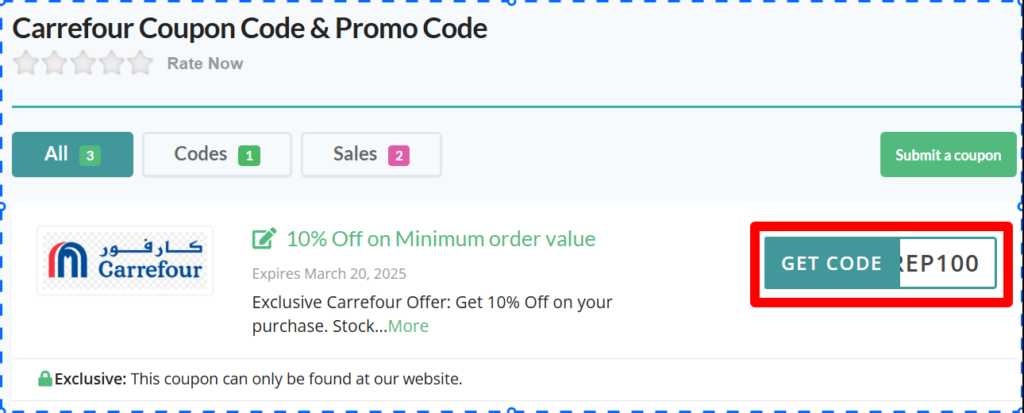 - Browse the available codes and Click on the Carrefour Coupon Code that you are interested in.